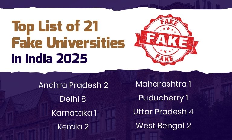 యూజీసీ తాజాగా వెల్లడించిన గణాంకాల ప్రకారం, దేశంలో మొత్తం 22 ఫేక్ యూనివర్సిటీలు కార్యకలాపాలు నిర్వహిస్తున్నాయి. వీటిలో 9 ఢిల్లీలో, 5 ఉత్తర్ప్రదేశ్లో ఉన్నాయని, మిగిలినవి కేరళ, పశ్చిమ బెంగాల్, మహారాష్ట్ర, ఆంధ్రప్రదేశ్ మరియు పాండిచ్చేరి రాష్ట్రాల్లో ఉన్నట్లు తెలిపింది.