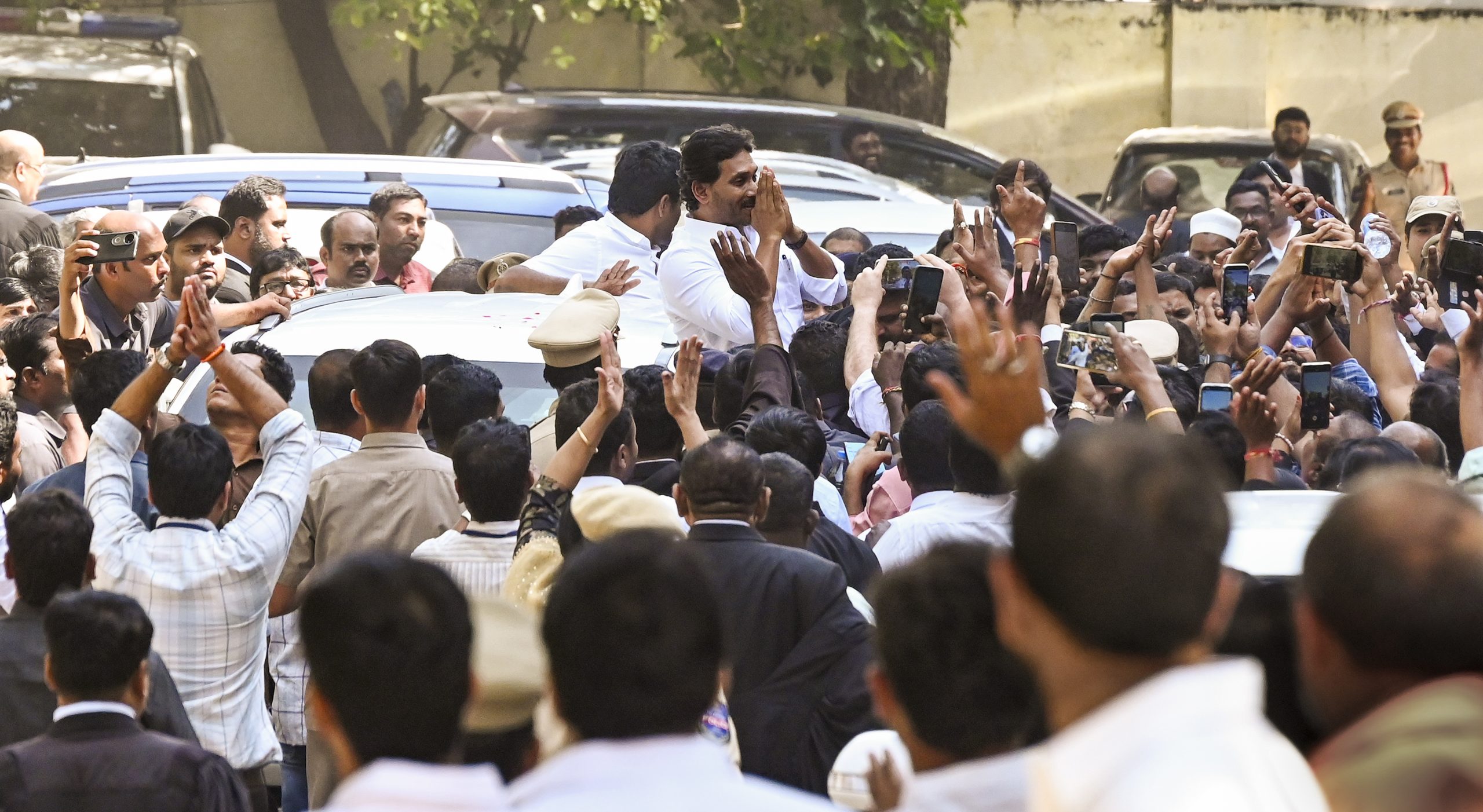 కోర్టు ఆవరణలో కూడా న్యాయవాదులు జగన్ను కలుసుకోవడానికి పోటీపడ్డారు. పలువురు న్యాయవాదులు విజయవాడ నుంచి ప్రత్యేకంగా వచ్చారు. కేసులకు సంబంధం లేని న్యాయవాదులూ కోర్టు లోపలకు రావడంతో కోర్టు హాలుకు బయట కూడా తోపులాటలు జరిగాయి. సెల్ఫీలు, కరచాలనం కోసం న్యాయవాదులు పోటీ పడగా, పోలీసులు అదుపు చేయలేకపోయారు. చివరకు అనుచరులు జగన్ చుట్టూ రక్షణ గోడలా నిలిచి ఆయనను బయటకు తీసుకెళ్లారు.
