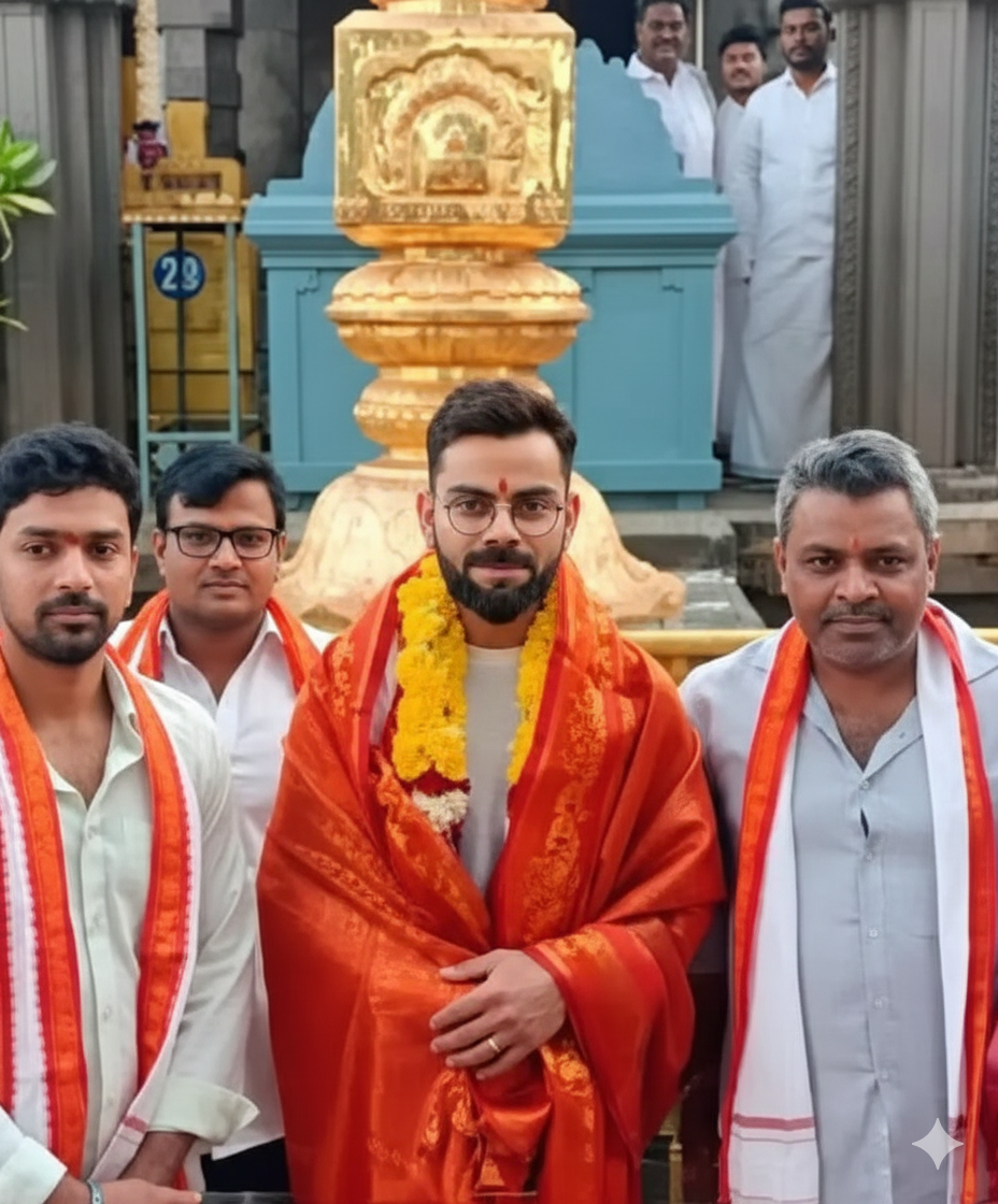 నిన్న విశాఖపట్నంలో జరిగిన భారత్ vs దక్షిణాఫ్రికా వన్డే మ్యాచ్ అనంతరం టీమ్ ఇండియా స్టార్ బ్యాట్స్మన్ విరాట్ కోహ్లీ, సింహాచలం వరాహ లక్ష్మీనరసింహ స్వామి వారి ఆలయాన్ని సందర్శించారు. ఆలయంలో ప్రత్యేక పూజలు చేసి స్వామి వారికి మొక్కులు చెల్లించుకున్నారు.ఈ సందర్భంగా దేవస్థానం అధికారులు విరాట్కు తీర్థ ప్రసాదాలు అందజేశారు. మ్యాచ్ ముగిశాక దేవాలయ దర్శనం కోసం కోహ్లీ రావడంతో అక్కడి భక్తులు, అభిమానులు ఆనందం వ్యక్తం చేశారు. కొంత సమయం ఆలయంలో గడిపిన కోహ్లీ తర్వాత తిరుగు ప్రయాణం అయ్యారు.
