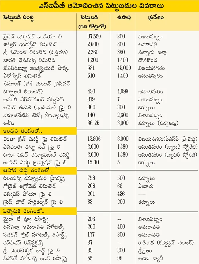 కొత్త పెట్టుబడులకే కాకుండా, ఇప్పటికే ఒప్పందాలు కుదుర్చుకున్న సంస్థల నుంచి వచ్చిన సవరణలపై కూడా SIPB చర్చించి ఆమోదం తెలిపింది.