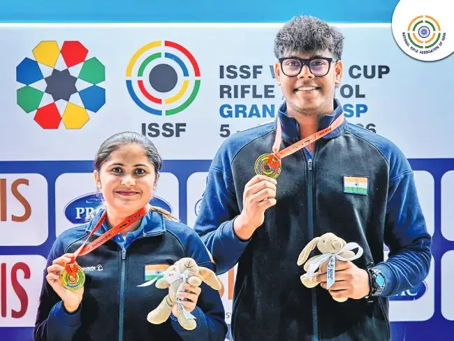 స్పెయిన్లోని గ్రానడా వేదికగా జరుగుతున్న ఐఎస్ఎస్ఎఫ్ (ISSF) ప్రపంచకప్లో భారత షూటర్లు ప్రపంచ రికార్డుతో సంచలనం సృష్టించారు. ముఖ్యంగా ఆంధ్రప్రదేశ్కు చెందిన యువ షూటర్ ముకేశ్ నేలవల్లి, హర్యానాకు చెందిన పలక్ జంట 10 మీటర్ల ఎయిర్ పిస్టల్ మిక్స్డ్ టీమ్ విభాగంలో పసిడి పతకాన్ని ముద్దాడారు.