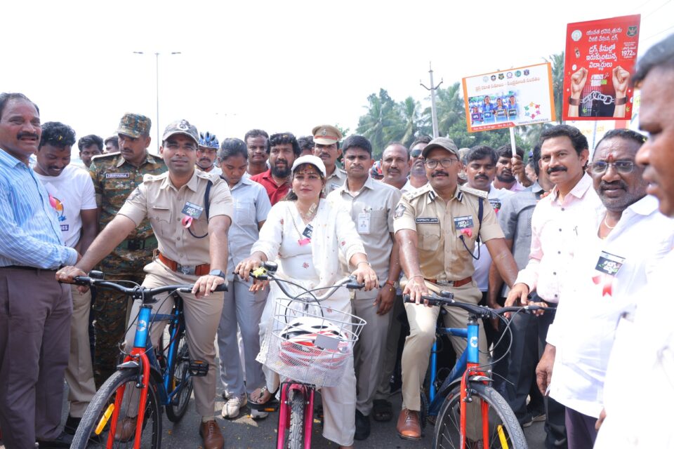 మాదక ద్రవ్యాల నుంచి దూరంగా ఉండాలనే సందేశాన్ని ప్రజలకు చేరవేయడానికి విశాఖ రేంజ్ పోలీసులు నిర్వహించిన ‘అభయం సైకిల్ యాత్ర’లో హోం మంత్రి వంగలపూడి అనిత సైకిల్ నడిపి స్ఫూర్తి ఇచ్చారు. బుధవారం అనకాపల్లి జిల్లా పాయకరావుపేట నుండి ఆమె ఈ ర్యాలీకి ప్రారంభం చేశారు. విశాఖ రేంజ్ డీఐజీ గోపీనాథ్ జెట్టి, అనకాపల్లి జిల్లా ఎస్పీ తుహిన్ సిన్హాలతో కలిసి పాత పంచాయతీ కార్యాలయం నుంచి జాతీయ రహదారి పైవైపు సుమారు మూడు కిలోమీటర్లు సైకిల్ నడిపి, శ్రీప్రకాష్ విద్యానికేతన్ వద్ద ముగించారు. స్థానికులు, విద్యార్థులు ఈ కార్యక్రమాన్ని ఉత్సాహంగా స్వాగతించారు.