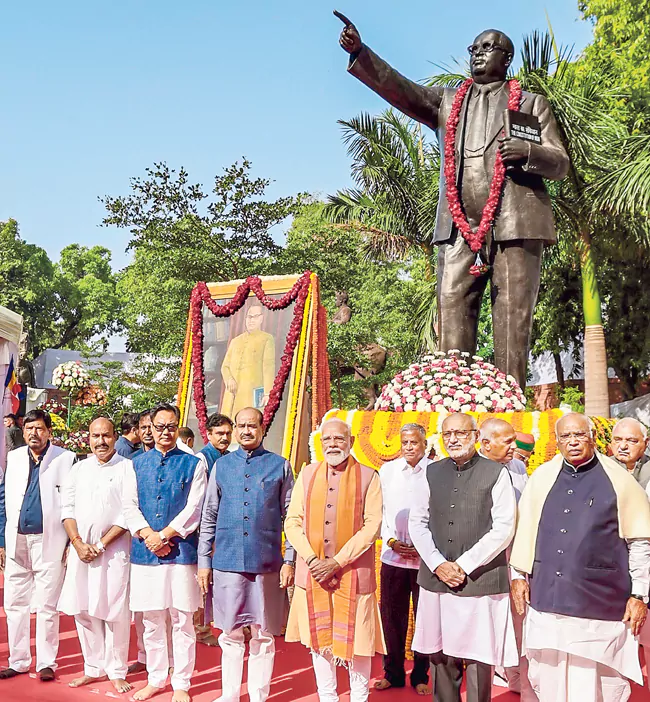 గుజరాత్లోని గాంధీనగర్లో నిర్వహించిన ‘సామాజిక సమరసతా మహోత్సవం’లో రాష్ట్రపతి Droupadi Murmu పాల్గొని అంబేడ్కర్ విగ్రహానికి పుష్పాంజలి ఘటించారు. పార్లమెంట్ ఆవరణలో కూడా ఉపరాష్ట్రపతి C. P. Radhakrishnan, ప్రధాని Narendra Modi, లోక్సభ స్పీకర్ Om Birla, కాంగ్రెస్ అధ్యక్షుడు Mallikarjun Kharge తదితరులు నివాళులు అర్పించారు.