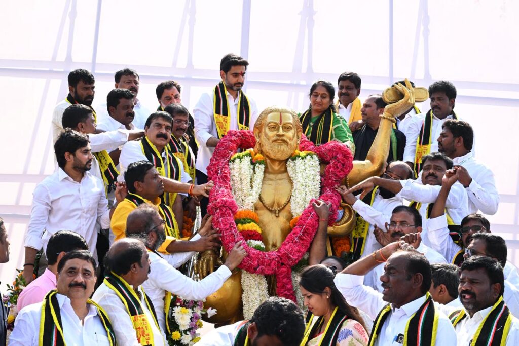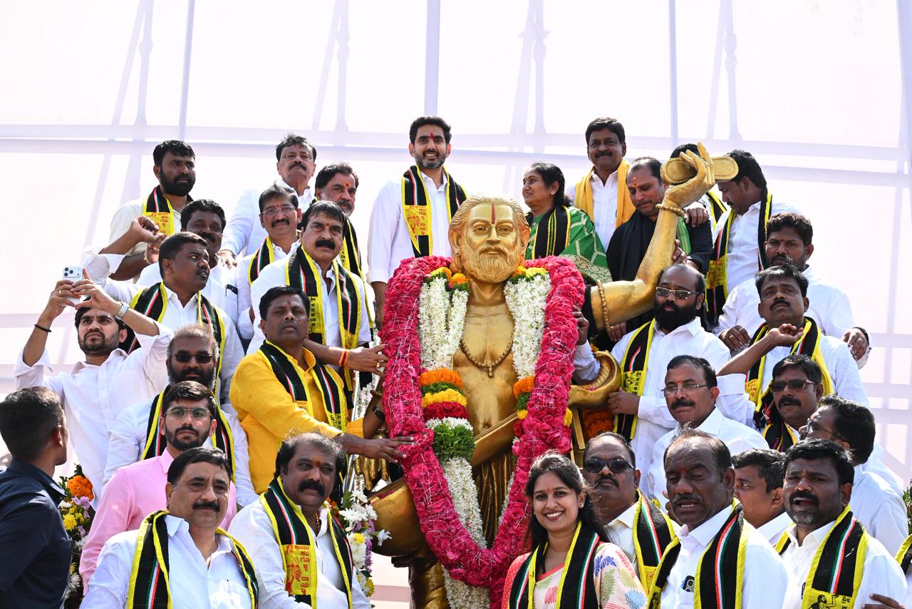 అనంతపురం జిల్లా కళ్యాణదుర్గం పట్టణంలో సామాజిక తత్వవేత్త, స్వరకర్త, కురుబల ఆరాధ్య దైవం శ్రీ భక్త కనకదాస 538వ జయంతి ఉత్సవాల్లో విద్య, ఐటీ శాఖల మంత్రి నారా లోకేష్ ముఖ్య అతిథిగా పాల్గొన్నారు. ఈ సందర్భంగా, కళ్యాణదుర్గం పట్టణం, హిందూపురం రోడ్ బైపాస్ సర్కిల్లో స్థానిక ఎమ్మెల్యే అమిలినేని సురేంద్రబాబు నేతృత్వంలో ఏర్పాటుచేసిన 9 అడుగుల కాంస్య విగ్రహాన్ని మంత్రి లోకేష్ ఆవిష్కరించారు. అలాగే, ప్రత్యేకంగా ఏర్పాటు చేసిన శిలాఫలకాన్ని కూడా ఆవిష్కరించారు. బైపాస్ సర్కిల్కి శ్రీ భక్త కనకదాస సర్కిల్ అని నామకరణం చేశారు.