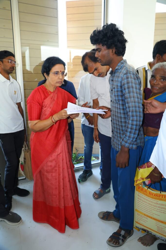 కుప్పం ప్రజలకు ఎల్లప్పుడూ అండగా ఉంటానని భరోసా ఇస్తూ, స్వచ్ఛ భారత్ అవార్డులు గెలుచుకున్న ఢిల్లీ పబ్లిక్ స్కూల్ విద్యార్థులను ఆమె అభినందించారు. అలాగే, దయాళ్ శ్రవణ్ ఫౌండేషన్ మద్దతుతో వినికిడి పరికరాలను పంపిణీ చేయడం ద్వారా సామాజిక సేవలో భాగస్వామ్యం అయ్యారు.నారా భువనేశ్వరి గారి ఈ పర్యటనలో ప్రజలతో నేరుగా మమేకమై వారి సమస్యలను వినడం, పరిష్కారాలకు కట్టుబడి ఉండడం పట్ల స్థానికులు హర్షం వ్యక్తం చేశారు. మహిళలు, వృద్ధులు, విద్యార్థులు సహా పెద్ద సంఖ్యలో ప్రజలు ఆమెను కలవడానికి వచ్చిన తీరు ప్రాంతంలో ఆమెకు ఉన్న అపారమైన ఆదరణను స్పష్టంగా తెలియజేసింది.