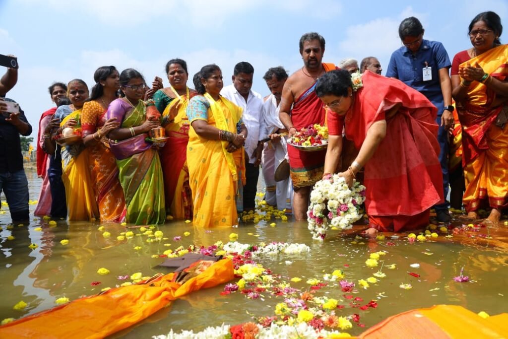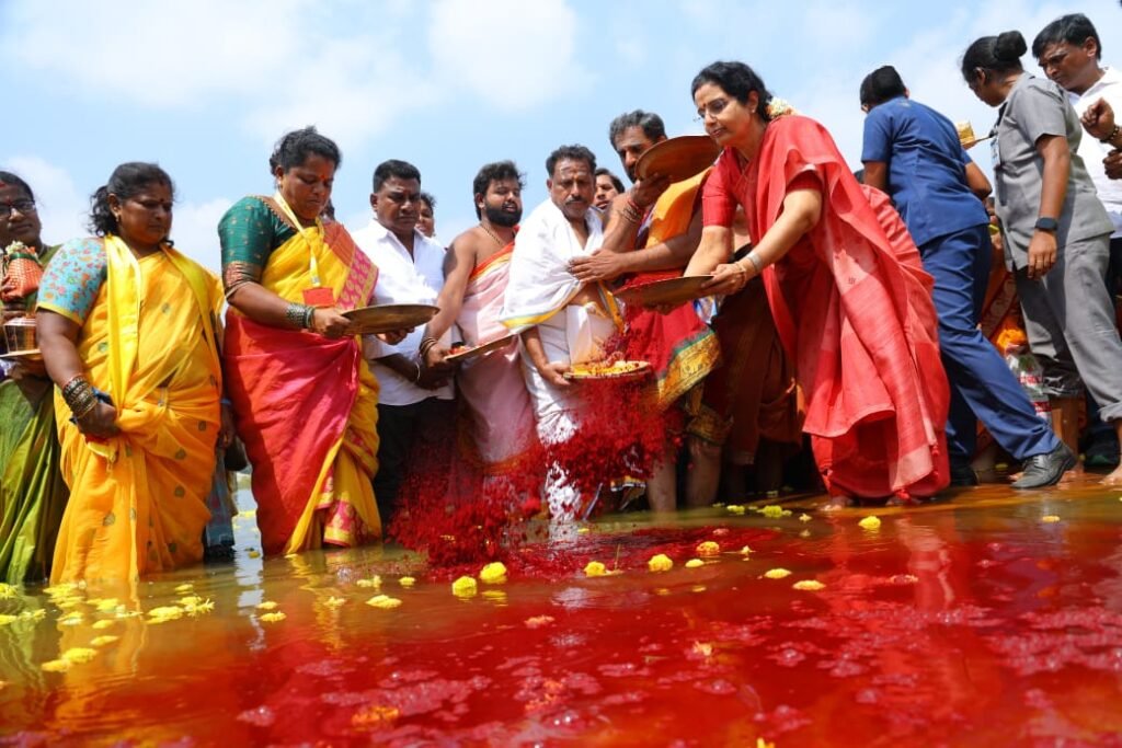 గుత్తార్లపల్లిలో నిర్వహించిన జలహారతి కార్యక్రమంలో నారా భువనేశ్వరి గారు పాల్గొన్నారు. అనంతరం శ్రీ ప్రసన్న చౌడేశ్వరమ్మ దేవాలయాన్ని దర్శించి ప్రత్యేక పూజలు నిర్వహించారు. “మా మాటగా చెప్పు భువనమ్మ” అంటూ ఫ్లకార్డులు పట్టుకొని కుప్పం మహిళలు ఆమెకు ఆత్మీయ స్వాగతం పలికారు. హంద్రినీవా ప్రాజెక్ట్ ద్వారా కుప్పం ప్రాంతానికి కృష్ణా జలాలు అందించినందుకు ముఖ్యమంత్రి చంద్రబాబుకు కృతజ్ఞతలు తెలుపుతూ కుప్పం ప్రజలు ఆనందం వ్యక్తం చేశారు.నారా భువనేశ్వరి పర్యటన సందర్భంగా స్థానికులు తమ సమస్యలు, అవసరాలను ఆమెకు తెలియజేశారు. ప్రజలతో భేటీ అయిన ఆమె, ప్రభుత్వం తీసుకొస్తున్న సంక్షేమ కార్యక్రమాలు మరింత మందికి చేరేలా కృషి చేస్తామని హామీ ఇచ్చారు. గ్రామంలోని అభివృద్ధి పనులను కూడా పరిశీలించి, ప్రజల అభిప్రాయాలను ఆసక్తిగా ఆరాతీశారు.