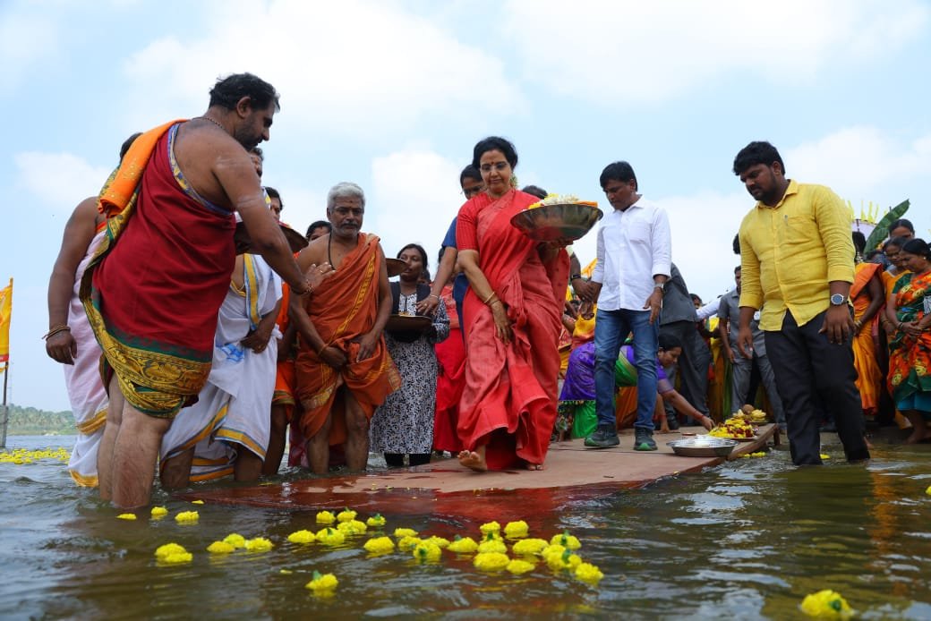గుత్తార్లపల్లిలో నిర్వహించిన జలహారతి కార్యక్రమంలో నారా భువనేశ్వరి గారు పాల్గొన్నారు. అనంతరం శ్రీ ప్రసన్న చౌడేశ్వరమ్మ దేవాలయాన్ని దర్శించి ప్రత్యేక పూజలు నిర్వహించారు. “మా మాటగా చెప్పు భువనమ్మ” అంటూ ఫ్లకార్డులు పట్టుకొని కుప్పం మహిళలు ఆమెకు ఆత్మీయ స్వాగతం పలికారు. హంద్రినీవా ప్రాజెక్ట్ ద్వారా కుప్పం ప్రాంతానికి కృష్ణా జలాలు అందించినందుకు ముఖ్యమంత్రి చంద్రబాబుకు కృతజ్ఞతలు తెలుపుతూ కుప్పం ప్రజలు ఆనందం వ్యక్తం చేశారు.నారా భువనేశ్వరి పర్యటన సందర్భంగా స్థానికులు తమ సమస్యలు, అవసరాలను ఆమెకు తెలియజేశారు. ప్రజలతో భేటీ అయిన ఆమె, ప్రభుత్వం తీసుకొస్తున్న సంక్షేమ కార్యక్రమాలు మరింత మందికి చేరేలా కృషి చేస్తామని హామీ ఇచ్చారు. గ్రామంలోని అభివృద్ధి పనులను కూడా పరిశీలించి, ప్రజల అభిప్రాయాలను ఆసక్తిగా ఆరాతీశారు.