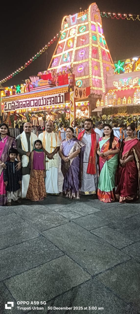 వైకుంఠ ఏకాదశి పర్వదినాన్ని పురస్కరించుకుని కలియుగ దైవం శ్రీ వెంకటేశ్వర స్వామి వారిని గౌరవ స్పీకర్ శ్రీ చింతకాయల అయ్యన్నపాత్రుడు గారి కుటుంబ సభ్యులు ఉత్తర ద్వారం ద్వారా దర్శించుకున్నారు.స్పీకర్ గారి సతీమణి శ్రీమతి చింతకాయల పద్మావతి గారు, టిడిపి రాష్ట్ర ప్రధాన కార్యదర్శి శ్రీ చింతకాయల విజయ్ – డాక్టర్ సువర్ణ దంపతులు, అలాగే కౌన్సిలర్ శ్రీ చింతకాయల రాజేష్ – దివ్యశ్రీ దంపతులు స్వామివారిని దర్శించుకుని ప్రత్యేక పూజలు నిర్వహించారు.