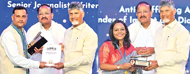 ▪️ జయదీప్ హార్దికర్, పల్లవీ ఘోష్లకు ఏపీ సీఎం చంద్రబాబు పురస్కారాలు అందజేశారు.