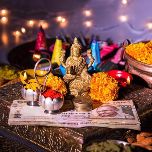 లక్ష్మీ మూర్తి గాని, విగ్రహం గాని పెట్టాలి. దీపం వెలిగించాలి.