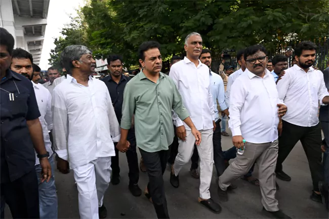 హైదరాబాద్లో బస్సు ఛార్జీల పెంపును నిరసిస్తూ, మాజీ మంత్రులు, భారత రాష్ట్ర సమితి నేతలు కేటీఆర్ (KTR), హరీశ్రావు, తలసాని శ్రీనివాస్ యాదవ్, పద్మారావు, సబితా ఇంద్రారెడ్డి నాయకత్వంలో, పార్టీ నేతలు ఆర్టీసీ బస్ భవన్కి చేరుకున్నారు. వివిధ ప్రాంతాల నుంచి నేతలు, కార్యకర్తలు పెద్దఎత్తున ఉద్రిక్తత సృష్టిస్తూ చేరారు. హరీశ్రావు మెహదీపట్నం నుంచి బస్సులో బస్ భవన్కి వచ్చినా, కేటీఆర్, తలసాని, పద్మారావు రేతిఫైల్ బస్టాండ్ నుంచి చేరారు. బస్సు ఛార్జీలు తగ్గించాలని కోరుతూ ఆర్టీసీ ఎండీకి వినతి పత్రం సమర్పించనున్నారు.