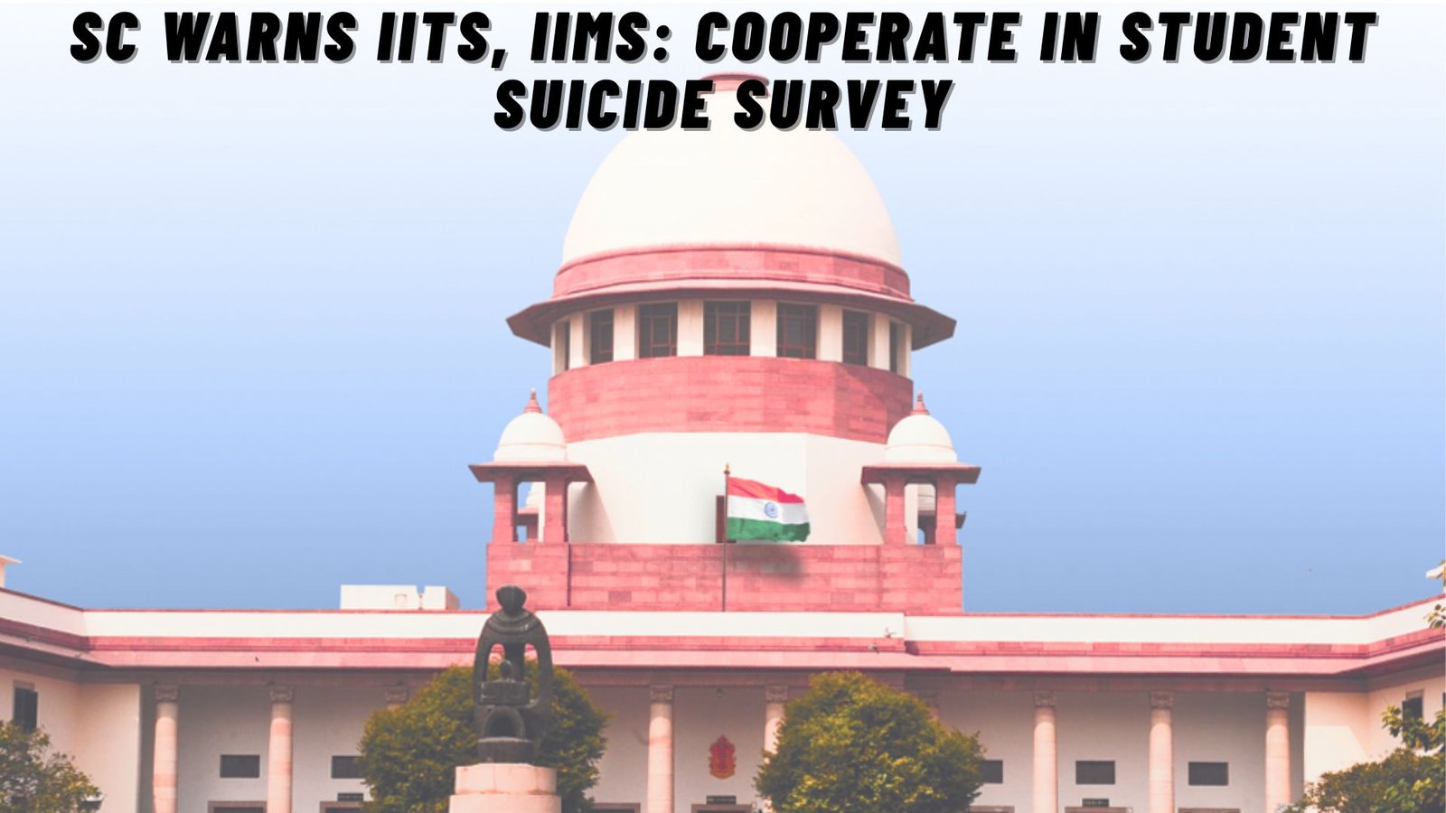 విద్యార్థుల ఆత్మహత్యల పెరుగుతున్న ఘటనలపై సుప్రీంకోర్టు ఆందోళన వ్యక్తం చేసింది. ఐఐటీలు, ఐఐఎంలు, ఎన్ఐటీలు, కేంద్ర విశ్వవిద్యాలయాలు వంటి ఉన్నత విద్యాసంస్థలు విద్యార్థుల ఆత్మహత్యలపై జరుగుతున్న సర్వేల్లో తప్పనిసరిగా పాల్గొనాలని స్పష్టం చేసింది.