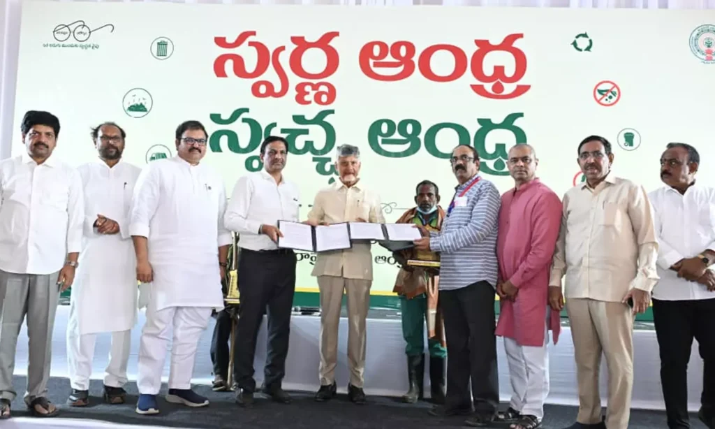 స్వర్ణాంధ్ర–స్వచ్ఛాంధ్ర కార్యక్రమంలో పాల్గొని ముఖ్యమంత్రి N. Chandrababu Naidu పలు కీలక ప్రకటనలు చేశారు. 2025 జనవరిలో ప్రారంభించిన ఈ కార్యక్రమం రాష్ట్రవ్యాప్తంగా ముమ్మరంగా సాగుతోందని తెలిపారు. డిప్యూటీ సీఎం Pawan Kalyan, మంత్రి నారాయణ నేతృత్వంలో పరిశుభ్రత చర్యలు వేగంగా కొనసాగుతున్నాయని చెప్పారు.
