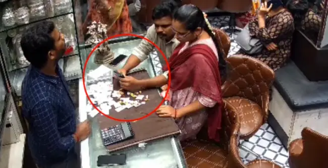 ఈ సమయంలో సిబ్బంది దృష్టి మరల్చి, ఆ వ్యక్తి చరవాణిగా కొన్ని కమ్మలను తీసుకుని తన చొక్కా జేబులో దాచుకున్నాడు. అనంతరం ఇద్దరూ షాపు నుంచి బయటకు వెళ్లిపోయారు. విషయం గమనించిన షాపు యజమాని వెంటనే సీసీటీవీ ఫుటేజ్ను పరిశీలించగా, చోరీ జరిగినట్లు స్పష్టమైంది.