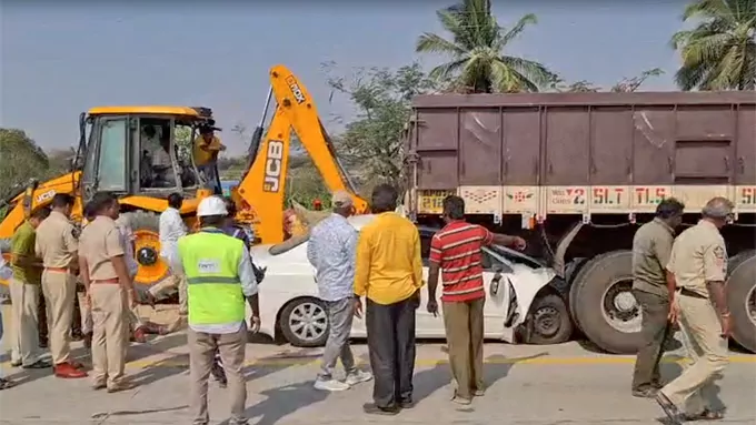 చిత్తూరు జిల్లాలో ఘోర రోడ్డు ప్రమాదం చోటుచేసుకుంది. గంగవరం మండలంలోని దండపల్లి క్రాస్ వద్ద బెంగళూరు–చెన్నై జాతీయ రహదారిపై జరిగిన ఈ ప్రమాదంలో ఒకే కుటుంబానికి చెందిన ఐదుగురు దుర్మరణం పాలయ్యారు. ఈ ఘటన స్థానికంగా తీవ్ర విషాదాన్ని మిగిల్చింది.పోలీసులు తెలిపిన వివరాల ప్రకారం.. ముందువెళ్తున్న లారీని కారు ఢీకొట్టడంతో ఈ ప్రమాదం జరిగింది. ఢీకొట్టిన దెబ్బకు కారు పూర్తిగా దెబ్బతింది. కారులో ప్రయాణిస్తున్న ఐదుగురు అక్కడికక్కడే ప్రాణాలు కోల్పోయారు.