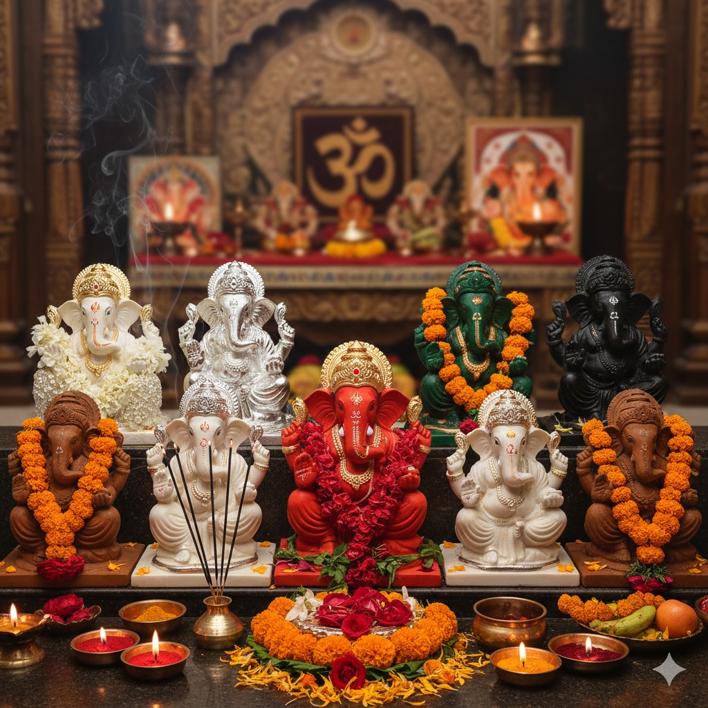 ప్రతి మనిషి జీవితంలోనూ గ్రహాల ప్రభావం వల్ల శుభ, అశుభ ఫలితాలు ఎదురవుతాయి. అశుభ ఫలితాలు లేదా గ్రహ దోషాలు ఉన్నప్పుడు, వాటిని తొలగించుకోవడానికి విఘ్నేశ్వరుడిని పూజించడం అత్యంత శ్రేయస్కరం. సూర్య దోషం నివారణకు ఎర్ర చందనంతో, కేతు దోషానికి తెల్ల జిల్లేడు పూలతో, చంద్ర దోష నివారణకు వెండి లేదా పాలరాతితో చేసిన గణపతిని పూజించాలి. కుజ దోషానికి రాగి వినాయకుణ్ణి, గురు దోషానికి పసుపు, చందనం లేదా బంగారంతో చేసిన విగ్రహాన్ని, బుధ దోష నివారణకు మరకత వినాయకుణ్ణి పూజించాలి. శుక్ర దోష నివారణకు స్ఫటిక వినాయకుడిని, శని దోషానికి నల్ల రాయిపై చెక్కిన గణపతిని, రాహు దోషానికి మట్టితో చేసిన వినాయకుణ్ణి భక్తితో పూజించడం ద్వారా ఆయా దోషాలు తొలగిపోతాయి. అలాగే, ఇంటిలో సుఖశాంతుల కోసం స్ఫటిక వినాయకుడిని, మానసిక ప్రశాంతత కోసం పాలరాతి గణపతిని పూజించాలి. ఎవరికి ఏ గ్రహ దోషం ఉందో తెలుసుకుని, పైన సూచించిన విధంగా గణపతిని ఆరాధిస్తే త్వరగా మంచి ఫలితాలు కనపడతాయి.